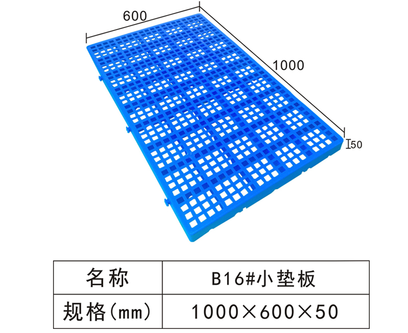 | Color | Low blue,blue,yellow,black,green,red,white,grey,other | Dynamic load | -- | Material | PP,PE | Model | ---- | Scope | Handling, transportation, storage and distribution | size | 1000×600×50 | Static load | -- | Type | Moisture proof board | 100 volume | 3m3 | Shelf | -- |